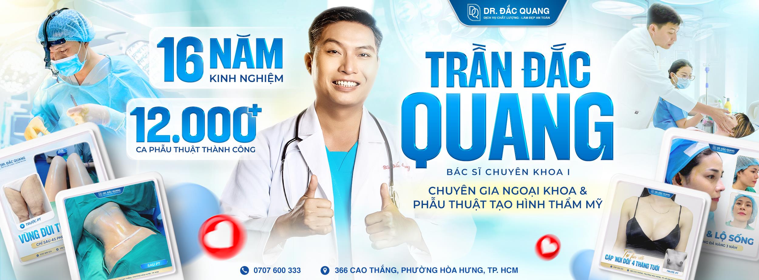 Với hơn 16 năm kinh nghiệm trong lĩnh vực phẫu thuật tạo hình thẩm mỹ, Bác Sĩ Đắc Quang đã khẳng định được vị thế của mình qua hàng nghìn